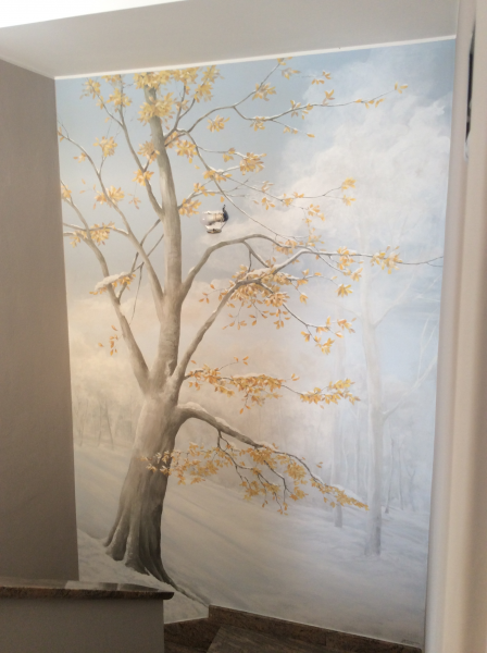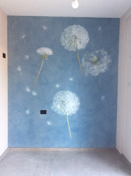 Un dipinto su parete perlescente